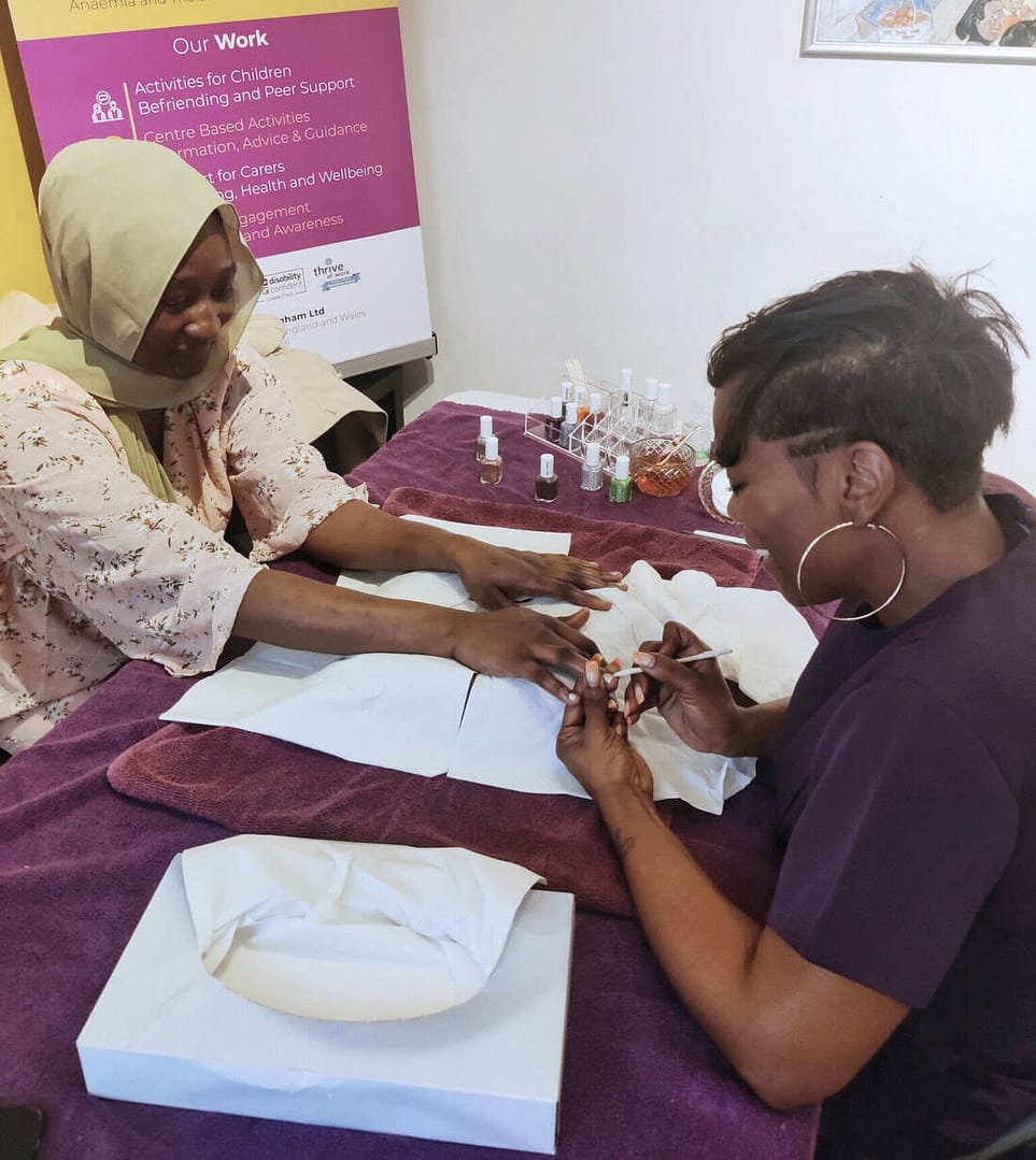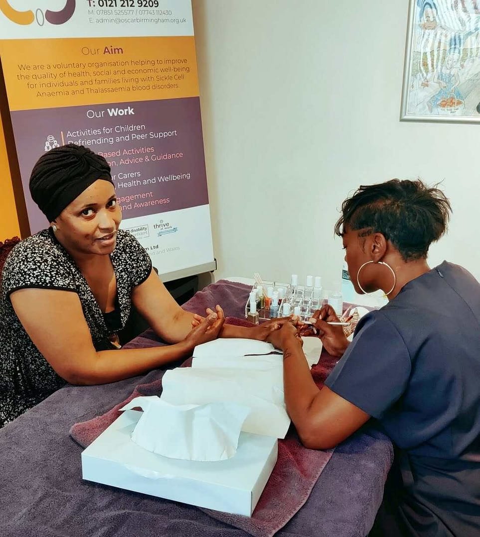 Our therapists give chemical-free facials, manicures and pedicures to individuals with sickle cell anaemia and thalassaemia. The charity works in partnership to help improve the quality of health, social and economic wellbeing for children and adults living with these conditions.